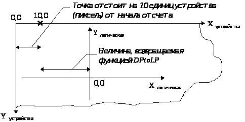 Однако не все ограничения метафайла являются непреодолимыми, многие из них легко обходятся. Например, мы хотим с помощью метафайла выводить изображение, занимающее все окно. При создании метафайла мы предположим, что изображение размещается в прямоугольнике, скажем, 100 x 100 единиц. Таким образом созданный метафайл будет воспроизводить изображение в области 100 x 100, независимо от размеров окна; но перед воспроизведением метафайла мы можем выбрать собственную систему координат такой, что бы размер внутренней области окна в этой системе координат был равен 100 x 100, и тогда изображение займет все окно.