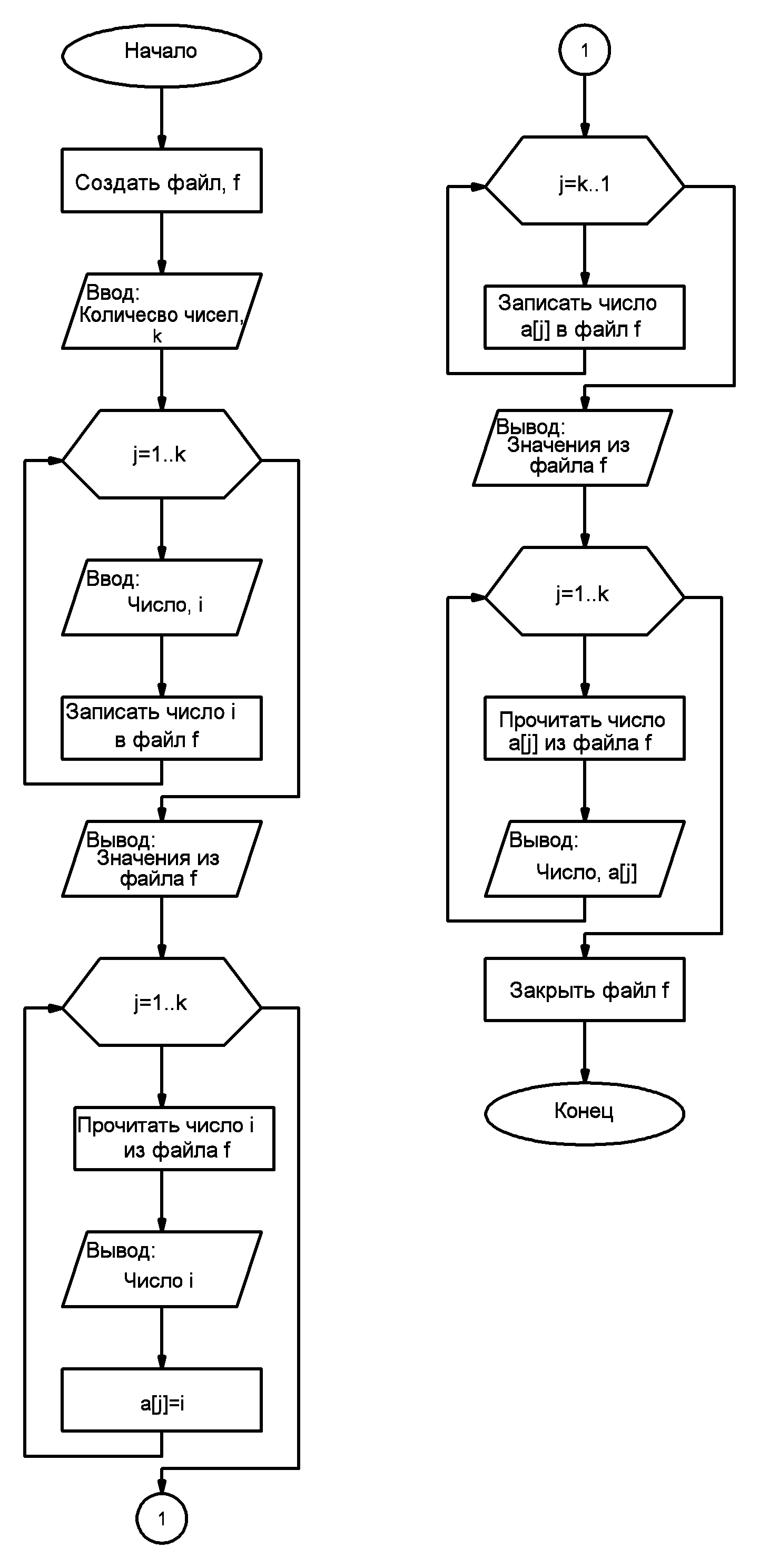 Оператором assign устанавливаем связь между программой и файлом zadanie5.txt. Далее командой rewrite (f); открываем (создаем) файл для записи. Вводим количество вводимых чисел в файл. С помощью цикла: for j:=1 to k do, вводим поочередно k целых чисел, а с помощью команды write (f,i); записываем эти числа в файл.