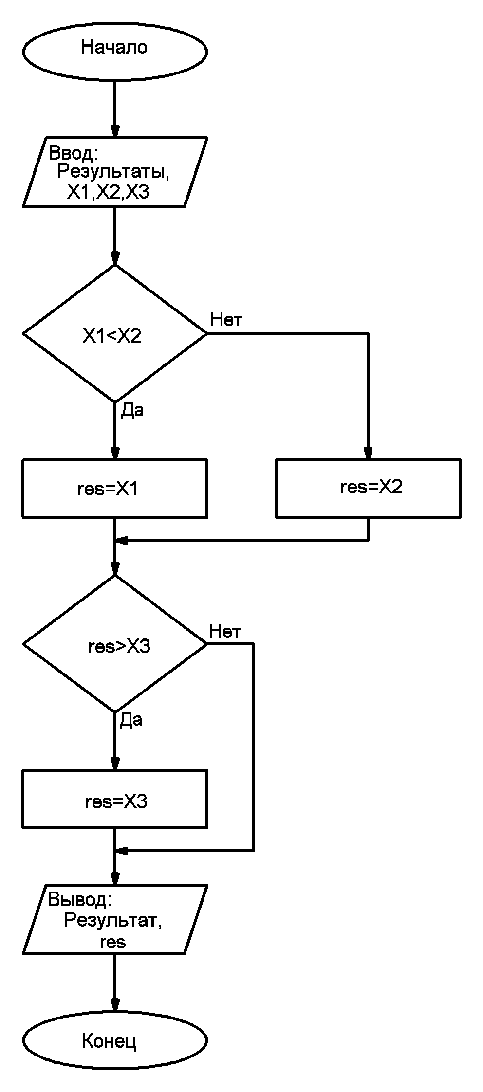 1. В ЭВМ поступают результаты соревнований по плаванию для трех спортсменов. Составьте программу, которая выбирает лучшей результат и выводит его на экран с сообщением, что это лучшей результат.