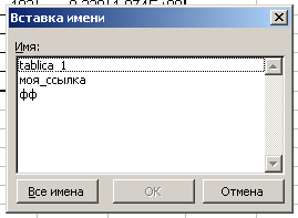 Для вставки именованной ссылки можно воспользоваться кнопкой со стрелкой вниз: