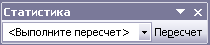 Панель «Статистика» (рис. 16) предназначается для сбора статистики о документе, точнее, количество знаков, слов, строк, страниц, абзацев. Используется только для сбора статистики. Обычно панель отключена. По необходимости можно её включить, поставив галочку напротив названия панели в меню управления панелями.