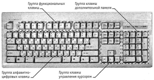 Стандартная клавиатура имеет более 100 клавиш, функционально распределенных по нескольким группам