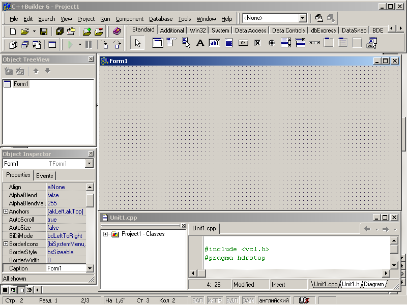Основою майже всіх проектів С++ Builder є форма, показана на рис. 4. Її можна розуміти як типове вікно Windows. Форма є основою, на якій розміщуються інші компоненти.