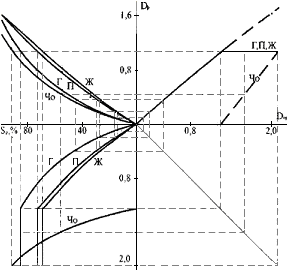 Рисунок 9 – Залежність еквівалентних нейтрально сірих оптичних щільностей D>с> від величин зональних оптичних щільностей блакитного, пурпурного і жовтого фарбових зображень D>j> (j = б, п, ж)