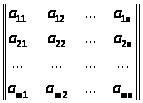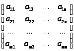 Матрицей называется система m·n чисел, расположенных в прямоугольной таблицы из m строк и n столбцов. Числа этой таблицы называются элементами матрицы. Обозначение матрицы: