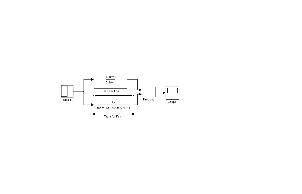 Структурная схема системы, приведенная на рисунке 4.1, представляет собой последовательное соединение, состоящее из смоделированных ранее структур объекта Б (с использованием блока Transfer Fcn) и объекта В. Она приведена на рисунке 4.1.