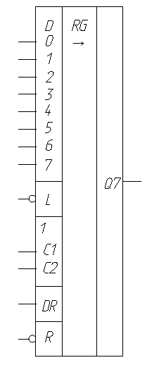 11. Восьмиразрядный регистр сдвига с параллельным выходом (К555ИР8 – 1 элемент в корпусе) УГО: