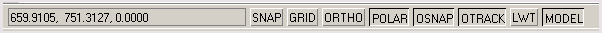строка состояния. Для переключения режима рисования или изменения настроек необходимо щелкнуть правой кнопкой мыши по области строки, где выводятся текущие координаты, либо по любой кнопке переключения режима рисования или изменения настроек;