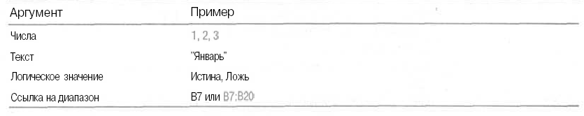 Аргументы функций – это ссылки на данные, над которыми функция выполняет действия. Аргументом может быть число, текстовая строка, логическое значение, ссылка на ячейку или диапазон ячеек либо имя рабочего листа. Например, если необходимо вычислить среднее значение чисел, размещенных в диапазоне В3:В20, аргументом функции СРЗНАЧ будет ссылка на этот диапазон, помещенная в круглые скобки сразу за названием функции: СРЗНАЧ(В3:В20).