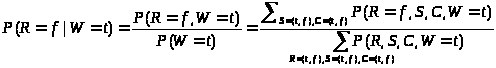Построенная априорная байесова сеть формально готова к использованию. Вероятностные вычисления в ней проводятся с использованием уже описанной процедуры маргинализации полной вероятности.