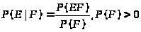 Для двух события E и F условная вероятность события E при условии, что наступило событие F, обозначается как P{E|F} и определяется по формуле