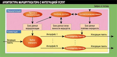 Маршрутизатор с интеграцией услуг должен поддерживать протокол резервирования ресурсов (Resource Reservation Protocol, RSVP). Маршрутизаторы этого типа добавляют протокол ресурсов, контрольный модуль и интерфейс к политике очередей уровня коммутации (см. Рисунок 1).