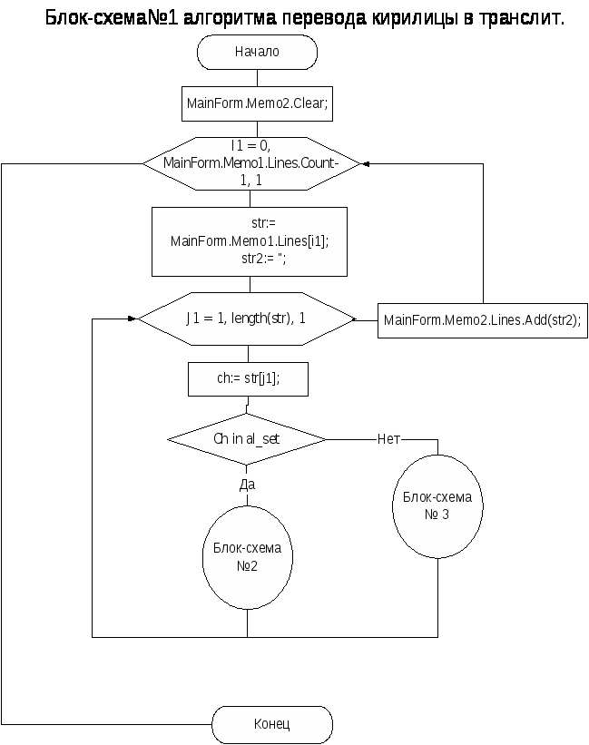 Алфавит перевода представляет из себя массив переменных типа shortstring с индексами от «А» до «Я». Элементами массива являются символы в транслите соответствующей букве в кириллице.