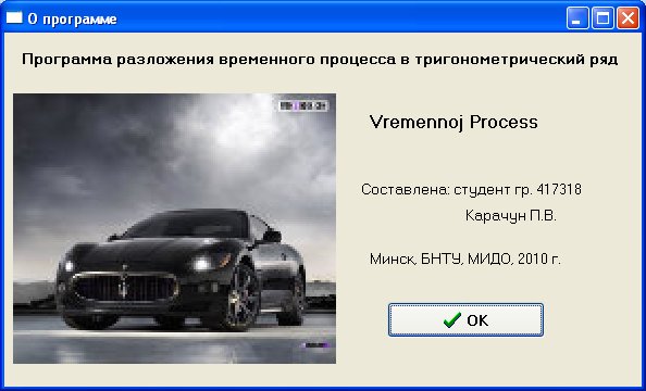 Тема: ”Программная реализация разложения временного процесса в тригонометрический ряд”