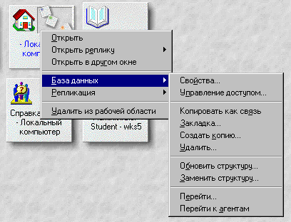 Обратите внимание! Список команд контекстного меню зависит от объекта, к которому оно относится, и от того, какие операции выполняются над элементами базы в данный момент
