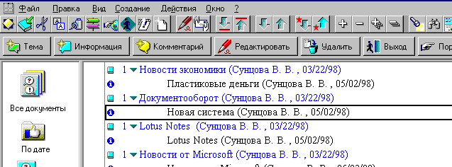 Для каждого такого документа в базу документов Notes будет помещена информация о датах создания и редактирования, сотрудниках выполнявших операцию и правах доступа на весь документ или его части.