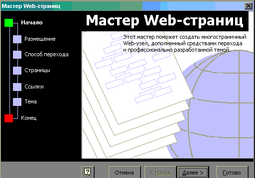 Подтверждаем выбор нажатием кнопки "ОК". Появляется главное окно мастера Web-страниц.