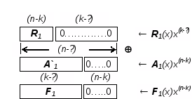 Рис. 1 иллюстрирует формирование последовательности F>1> в векторной интерпретации всех участвующих величин. Обратим внимание на длину последовательности F>1>, на то обстоятельство, что при суммировании векторы R>1> и A`>1> «выровнены» со стороны старших разрядов, а F>1> имеет справа (n-k) нулевых бит.