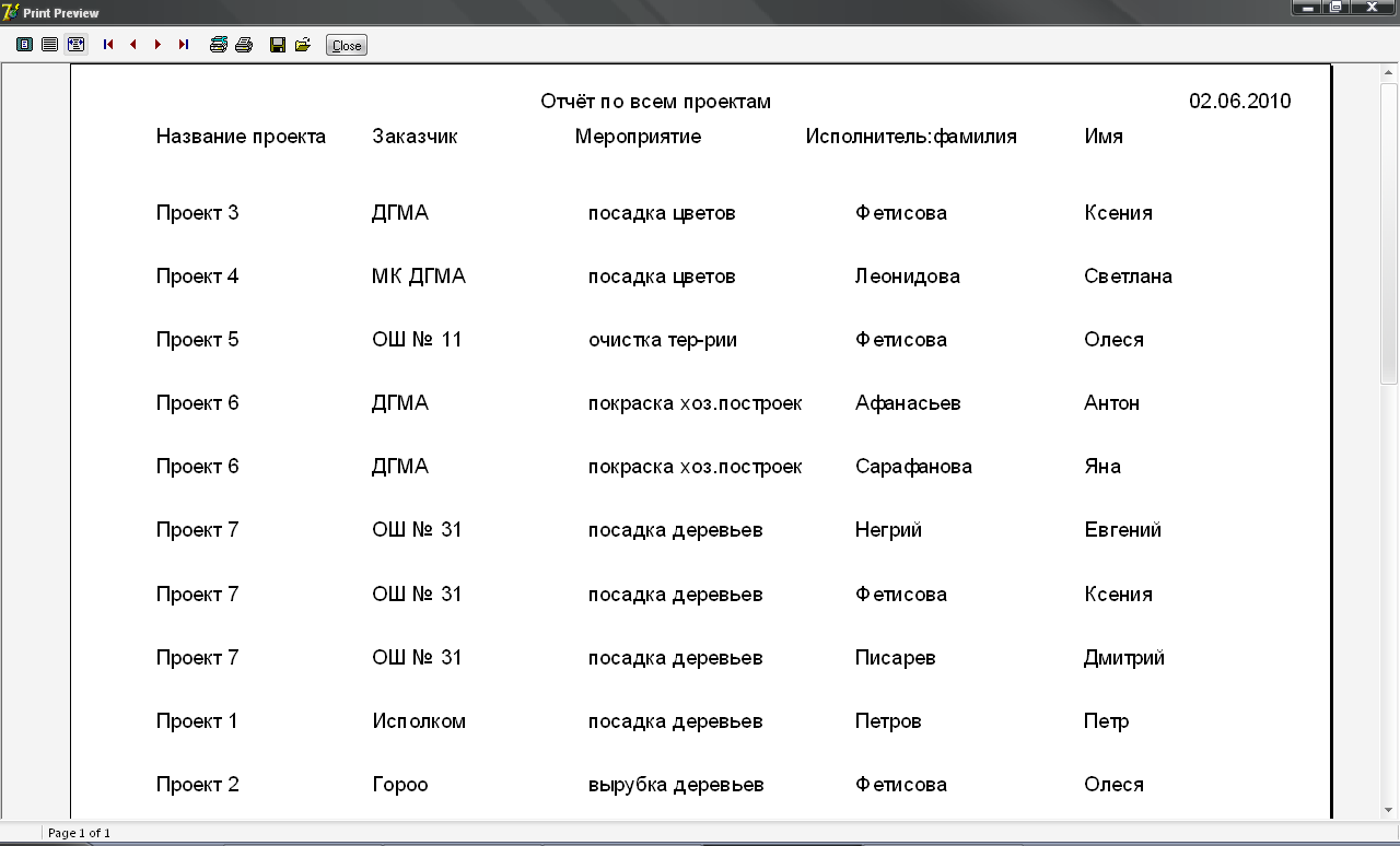 6) Вывод отчёта по всем проектам