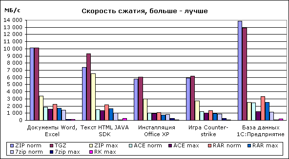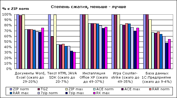 Наиболее распространенные программы-архиваторы имеют приблизительно одинаковые возможности и ни одна из них не превосходит другие по всем параметрам: одни программы работают быстрее, другие обеспечивают лучшую степень сжатия файлов. Даже если сравнивать программы только по степени сжатия, то среди них нет лидера: разные файлы лучше сжимаются разными программами.