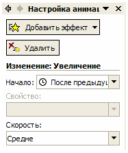 Затем выбираем время начала эффекта: по щелчку, с предыдущим действием, после предыдущего действия, а так же скорость эффекта.