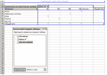 Перетаскиваем из Списка полей сводной таблицы поля: