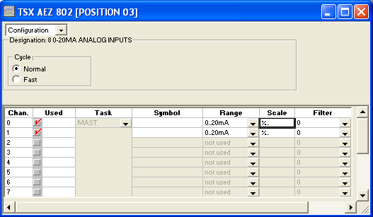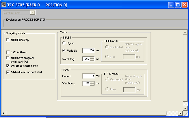 Рис. 2 Конфігурування контролера Modicon TSX Micro 3705