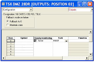 - комбінований повноформатний модуль TSX DMZ 28DR, який встановлений у першому слоті і займає 1-е і 2-е місця. Модуль має 16 дискретних входів з напругою 24 В постійного струму та 12 релейних виходів з струмом комутації 3 А та напругою 24 В постійного струму і 24-240 В змінного струму;