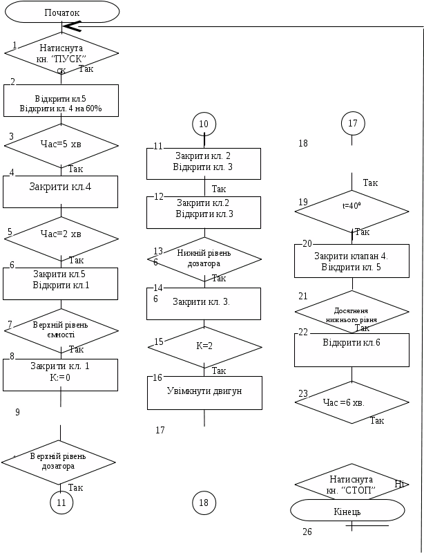 Якщо не натиснута кнопка «СТОП», продовжити роботу починаючи з п. 1, інакше – завершити роботу.