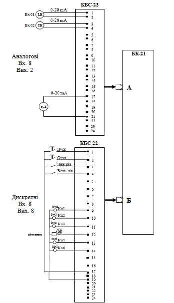 Таблиця відповідності адрес входів-виходів різних контролерів, що відповідають умовним позначенням, наведеним у спрощеній схемі автоматизації об’єкта керування.
