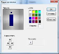 Викликаємо контекстне меню на клавіші і вибираємо «Изменить значок на кнопке». При цьому з’являється діалогове вікно редактора кнопок який дозволяє виконати редагування або створити власний малюнок.