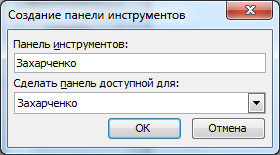 При цьому виникає вікно панелі інструментів користувача. Замість «Настраємая1» вводимо свою назву, нижче обираємо назву власного документу. Натискаємо на створеному об’єкті з’являється невеличка панель інструментів і після цього закриваємо вікно «Настройка».