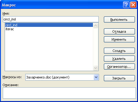 Виконуємо команду: Меню/Сервис/Макрос/Макроси. З’являється вікно «Макроси».