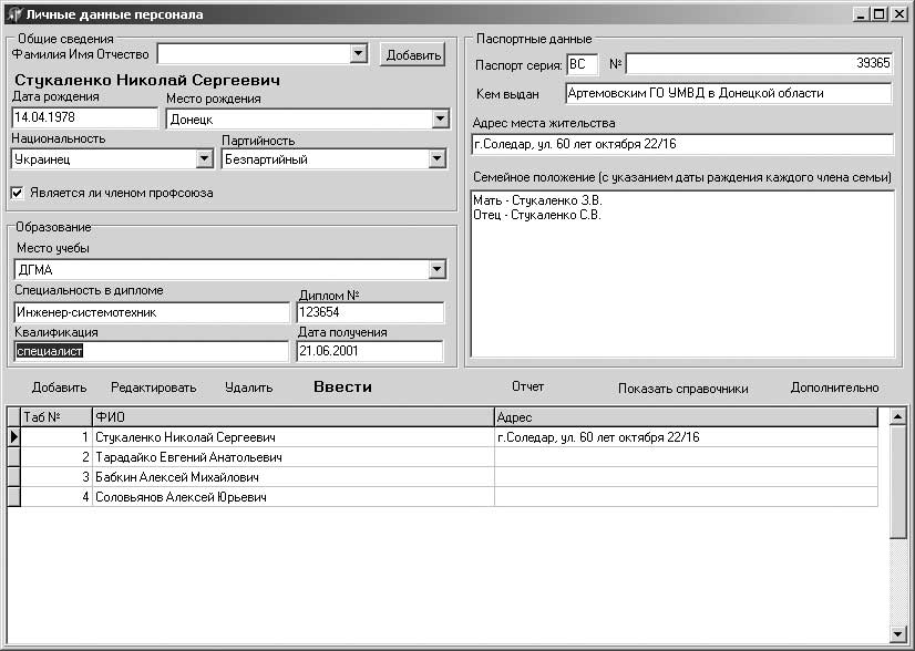 формирование и ведение базы данных работников, составление отчета в соответствии с данными о работнике. Разработка проводилась на персональной электронно-вычислительной машине в интегрированной среде разработки Delphi.