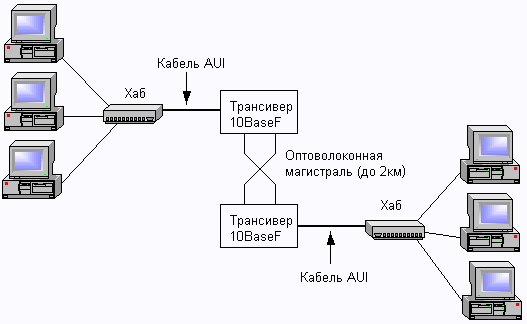 Рис. 3.5. Конфигурация локальной сети класса10BaseF