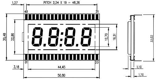 Данный индикатор подходит по всем критериям. Он является жидкокристаллическим, эти индикаторы характеризуются низким энергопотреблением по сравнению со светодиодными, но у них есть и недостатки: плохая видимость пли плохом освещении, плохая работоспособность при низкой температуре. Индикатор DE-119 имеет следующий вид: