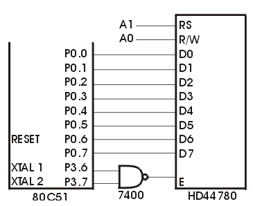 Рис.8. Подключение LCD-дисплея к микроконтроллеру серии MCS-51