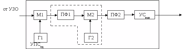 блок модуляторов прямого канала (МПрК), состоящий из двух модуляторов М1 и М2, полосовых фильтров ПФ1 и ПФ3, и задающих генераторов Г1 и Г2.