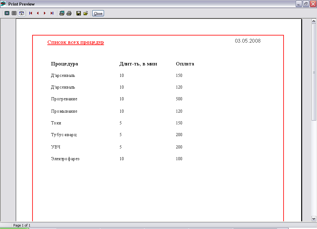 10. Отчет "Список всех процедур". Вид отчета представлен на рисунке 7.10.
