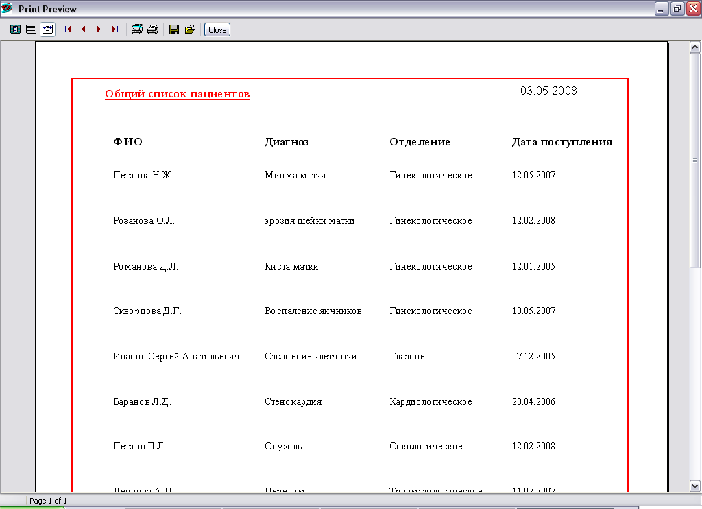 Рисунок 7.9 – Отчет "Общий список пациентов"