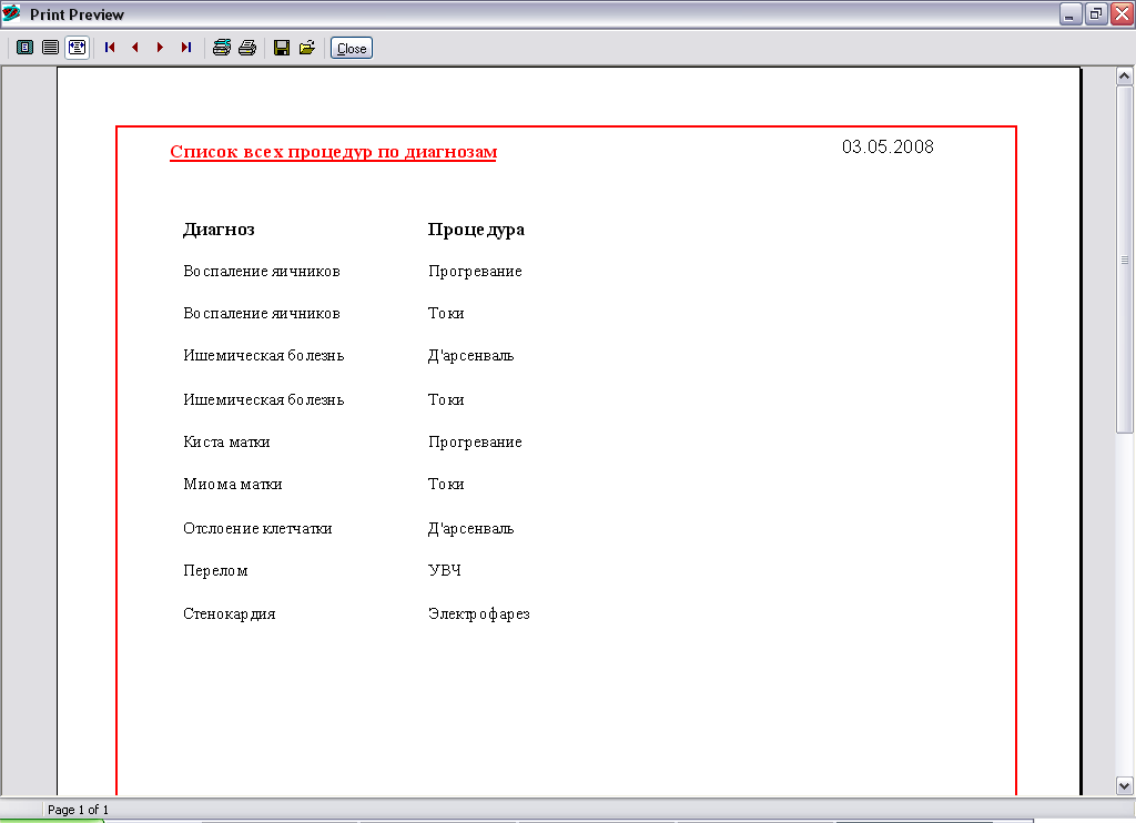 Рисунок 7.11 – Отчет "Список процедур по диагнозам"