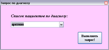 Выбрав запрос по диагнозу, появляется окно запроса, представленное на рисунке 6.11, где можно выбрать какой именно диагноз вас интересует.
