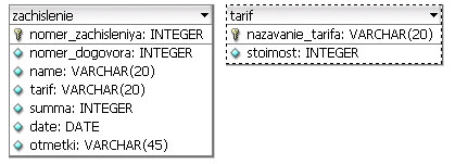 Пользователь(№ договора, ФИО, Адрес, Телефон, Имя компьютера, Ник, IP-адрес, MAC-адрес, Статус, Название Тариф, Баланс, Дата подключения, Особые отметки)