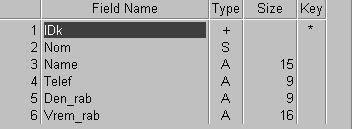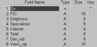 На рисунке 4 показана физическая модель таблицы «Кабинеты».