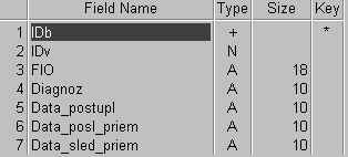 На рисунке 6 показана физическая модель таблицы «Пациенты».