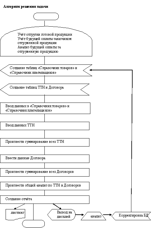 Сведения, характеризующие отгрузку, находятся в ТТН (форма 4) Для решения задачи, данные из ТТН (номер документа, дата отгрузки, идентификатор заказчика, идентификаторы отгруженных изделий и их количества, а также общая сумма отгруженного) обязательно должны поступать в базу данных.