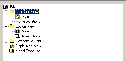 Рабочий интерфейс программы IBM Rational Rose 2003 состоит из различных элементов, основными из которых являются:
