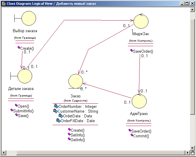 1. Откройте диаграмму, содержащую пакеты «Сущности», «Границы», «Контроль» (Logical View).