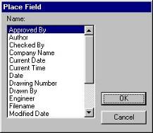 В программе имеется механизм размещения информационных полей с помощью команды Place / Field. Окно команды Place / Field представлено на рисунке 6.1.