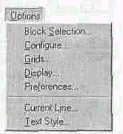 В строке меню щелкните мышью по команде Option (Установки). Появиться выпадающее меню (рисунок 1.2), позволяющее выбирать элементы настройки рабочего поля.